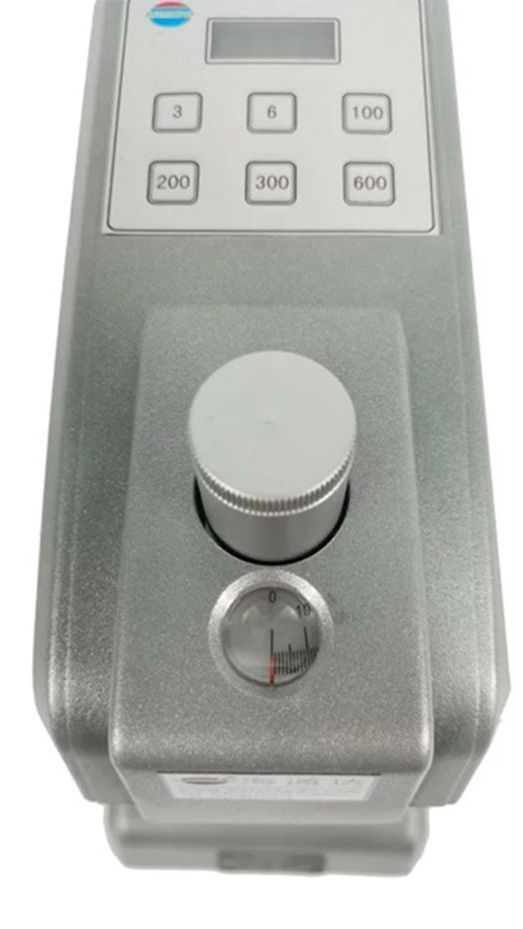 Переключение скоростей осуществляется с помощью кнопок. Каждой кнопке соответствует 2 скорости, выбор которых осуществляется с помощью регистровой кнопки. Выбранная скорость вращения отображается на дисплее. Показание угла закручивания торсионной пружины отображаются в окошке на шкальном диске. При 300об/мин показания соответствуют вязкости исследуемого раствора в мПа·с, при остальных скоростях величина пересчитывается в вязкость путем умножения на фактор скорости.