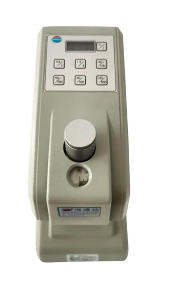 Переключение скоростей осуществляется с помощью кнопок. Каждой кнопке соответствует 2 скорости, выбор которых осуществляется с помощью регистровой кнопки. Выбранная скорость вращения отображается на дисплее. Показание угла закручивания торсионной пружины отображаются в окошке на шкальном диске. При 300об/мин показания соответствуют вязкости исследуемого раствора в мПа·с, при остальных скоростях величина пересчитывается в вязкость путем умножения на фактор скорости.